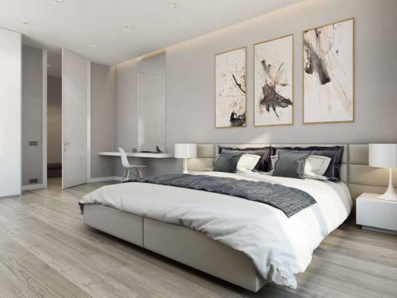 При большой загруженности в повседневной жизни, место отдыха должно максимально способствовать расслаблению и отдыху. В этом случае спальня в стиле минимализм является лучшим вариантом. Минимальное количество функциональной мебели, серо-черные цвета с ярким акцентом не загружают пространство и делают его комфортным.
