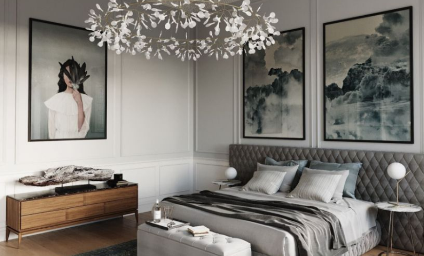 Дизайнеры пересматривают принцип размещения мебели, кровать перемещается от стены в центр комнаты. Отказ от громоздких вещей — еще одна тенденция, которая реализуется не только созданием отдельных гардеробных и будуаров, но и при помощи модульной мебели.