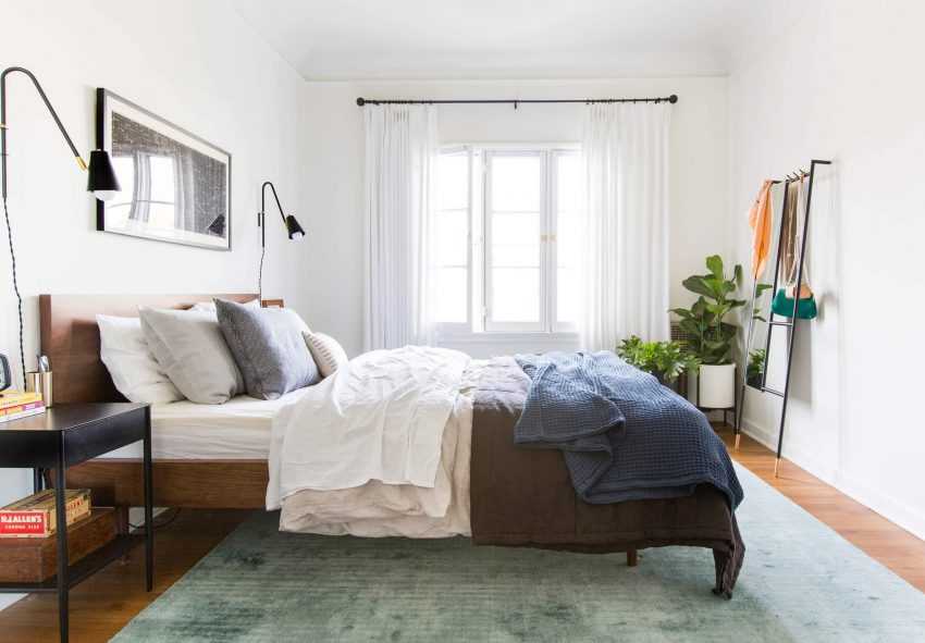Интерьер модной и практичной спальни основан на принципах экологичности и легкого поддержания чистоты.