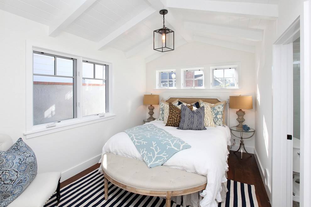 Американский стиль подразумевает свободное пространство. Достичь такого эффекта, даже в маленькой спальне, вполне возможно. Светлые тона, минимум мебели и много света позволяют визуально увеличить пространство.