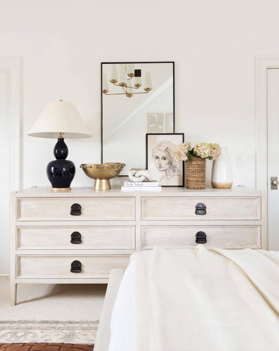 Другой вариант создать акцент на стене над изголовьем — повесить туда что-либо, например, картины или фотографии в рамках, часы, зеркало, панно или другую рукотворную вещицу.