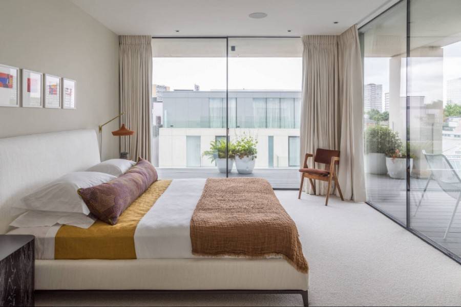 Визуальная прохлада которые создают стеклянные поверхности наполнит комнату свежестью, и расположит ко сну. А отсутствие миллиона деталей в интерьере не будут отвлекать от предстоящего спокойного сна.