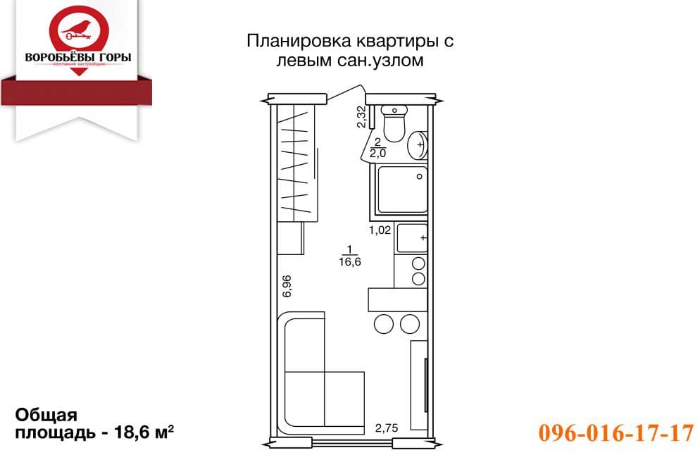 В жилом квартале «Воробьевы горы» Вы можете купить квартиры-студии, площадью 23.3 м2. Этого вполне достаточно для комфортного проживания и для того, чтобы такой вариант недвижимости можно было считать полноценным аналогом полнометражных 1-комнатных квартир.
