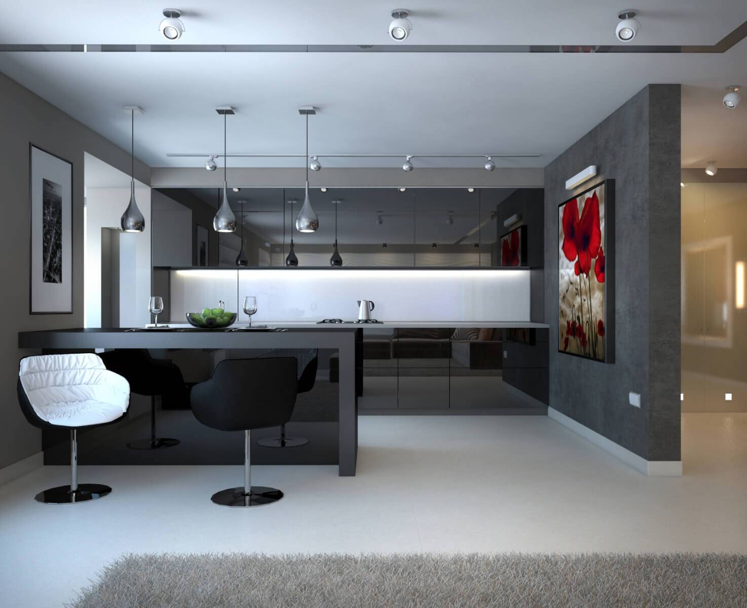 Цветовое оформление кухонного пространства в квартире-студии может выполнять одну из двух функций:
