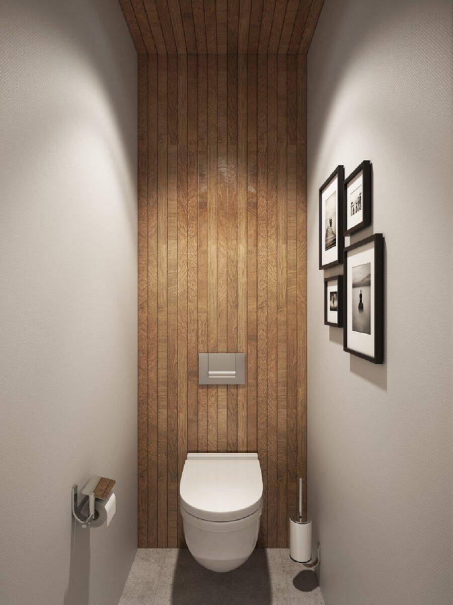 Помимо традиционной плитки, пластика или мрамора, которые часто используются для дизайна туалета, можно применить древесину. Это будет оригинально смотреться, а деревянные панели создадут дополнительное ощущение уюта и комфорта. Но тут есть ряд нюансов. Дерево – материал с повышенной восприимчивостью к влажности. Фото дизайна туалета 1.5 кв. м. из дерева выглядят привлекательно, но нужно понимать, что просто досок тут будет недостаточно.