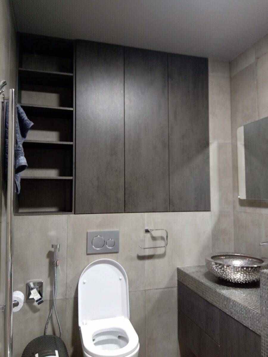 Поскольку, если ранее они были на виду — это позволит выиграть лишние метры столь важного пространства. Далее, следующим моментом может стать обустройство фальш-стен, встраивание компактных ниш для хранения бытовой продукции, размещения счетчиков на воду