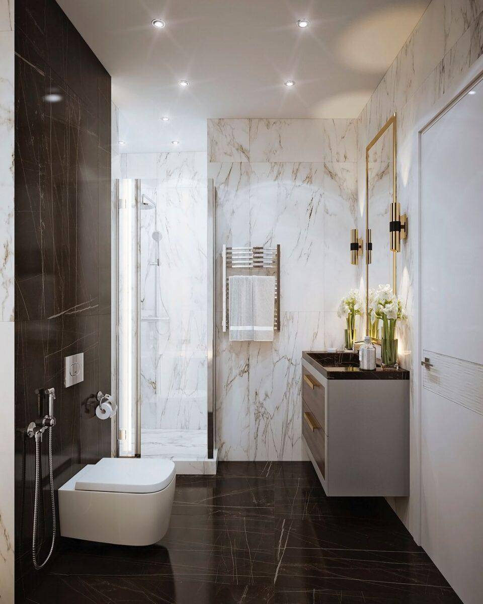 На некоторых фото будут обычные напольные унитазы — это ошибка. Эти фото тут для иллюстрации других идей, возвращаться к этому не буду.