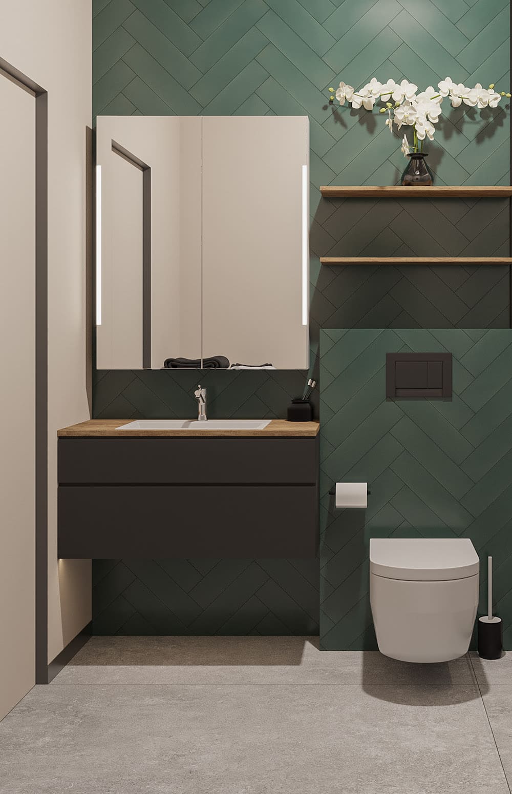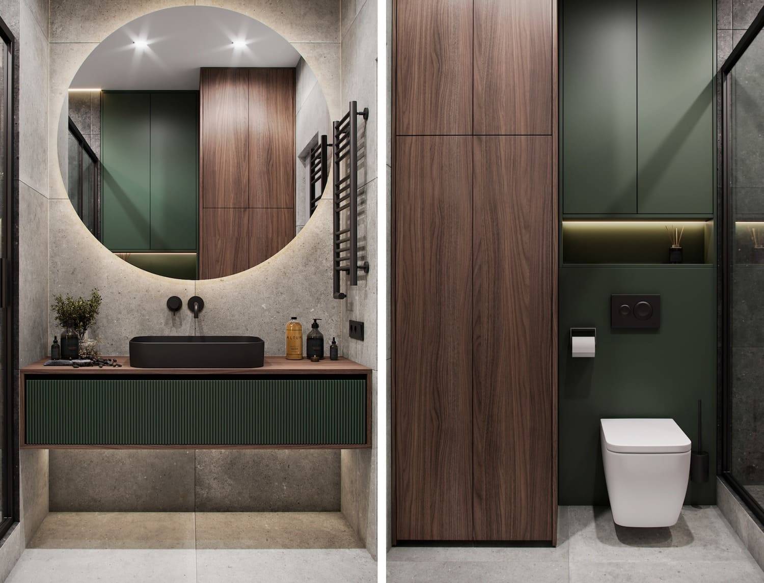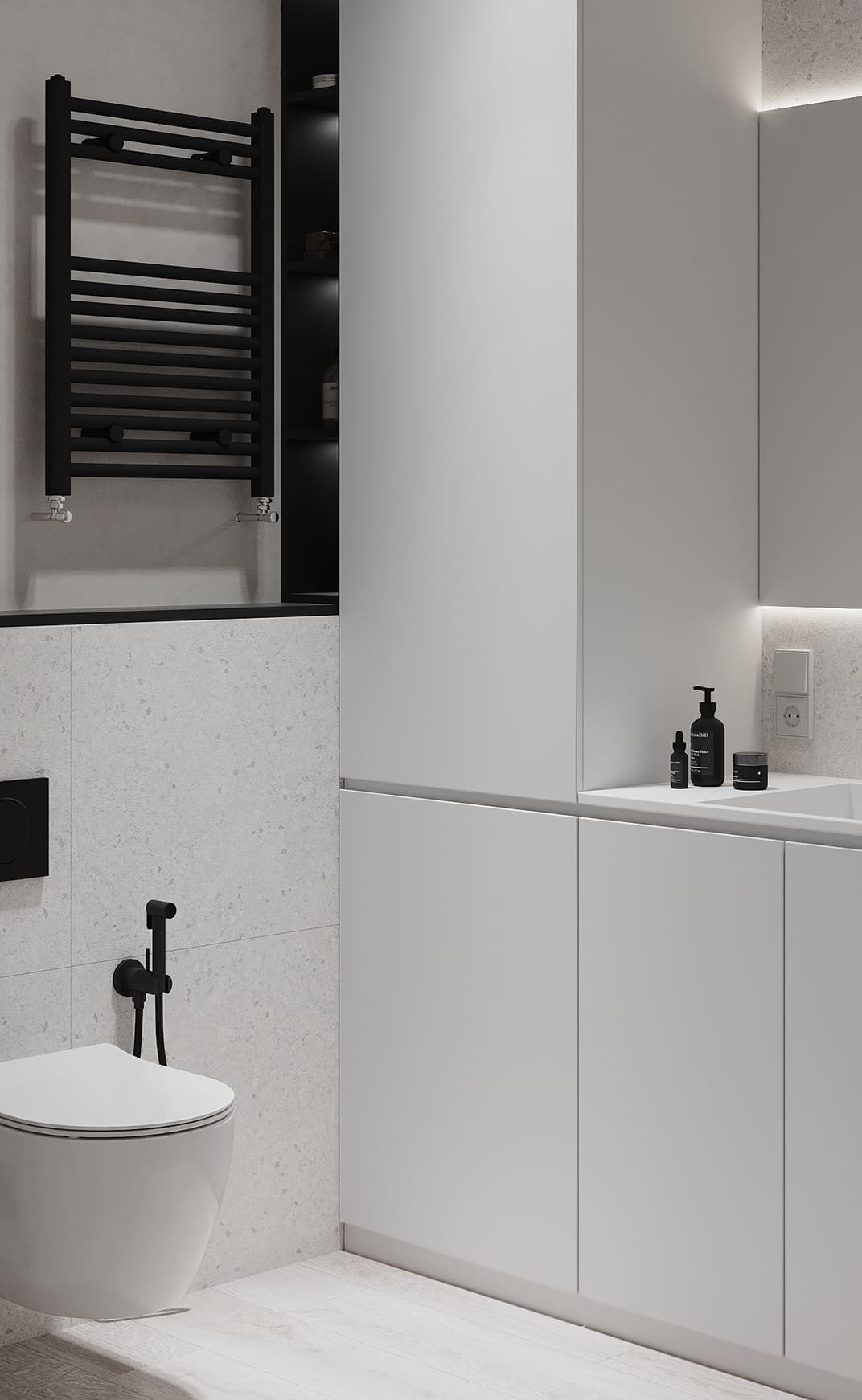 Пандемия диктует свои правила: люди стали больше времени проводить дома. Поэтому в современном дизайне туалетной комнаты лучше исключить яркие или раздражающие тона и детали. Модный дизайн в туалете – это нейтральная палитра, которая воспринимаются естественно, а также сочетание не более двух оттенков цвета.