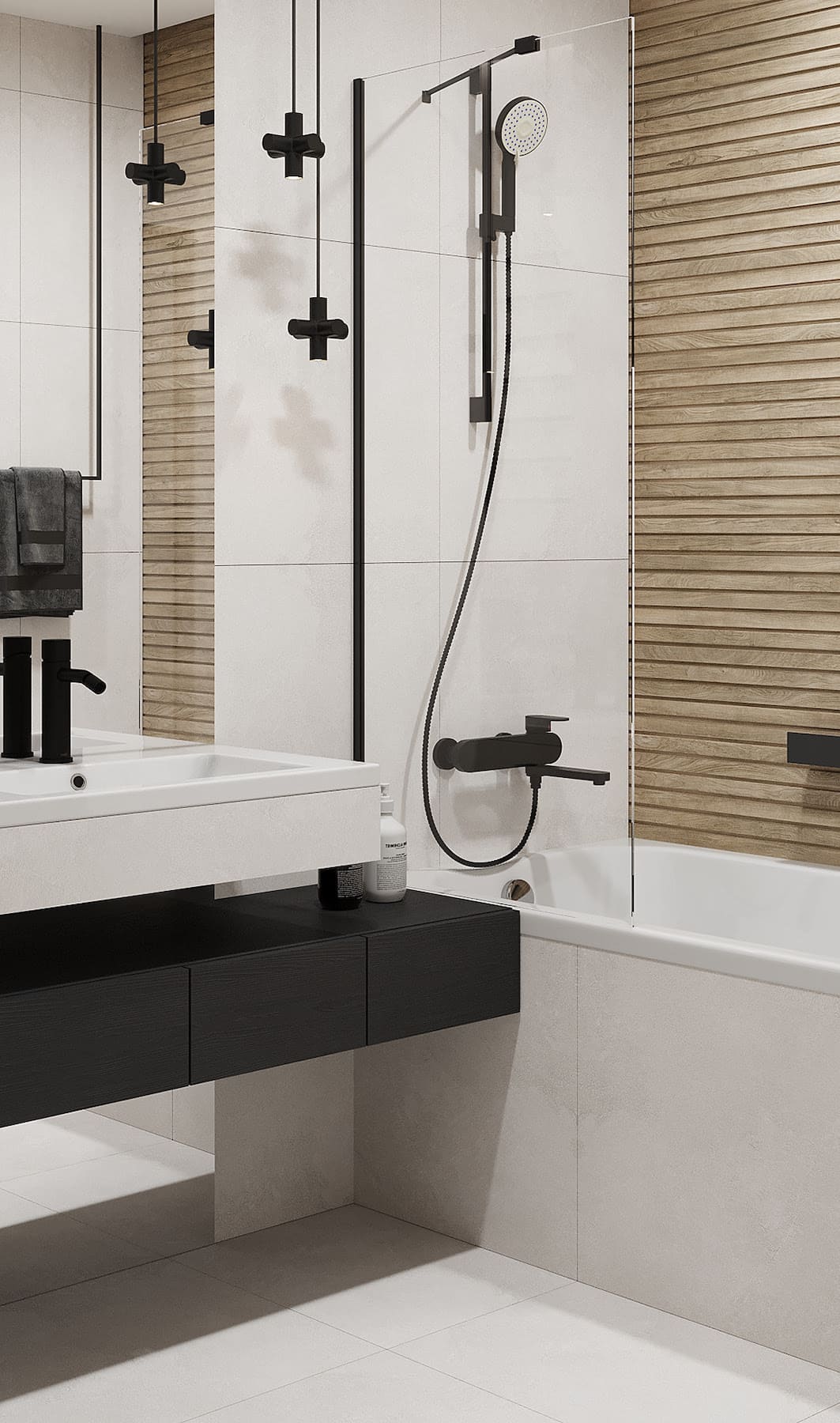 - никакой слишком крупной или мелкой керамики, это визуально «крадет» пространство;