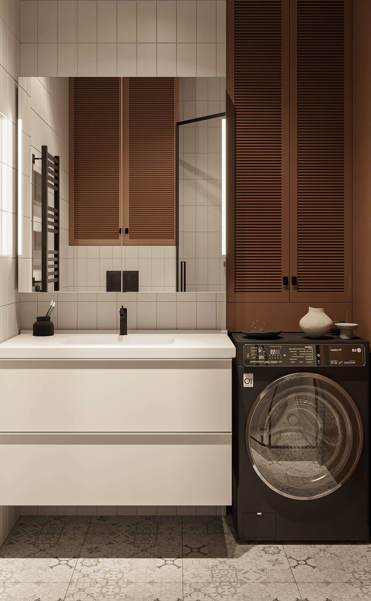 - Есть ли возможность установить стиральную машину вне помещения, например в кухне или коридоре. От этого дизайн маленькой ванной только выиграет.
