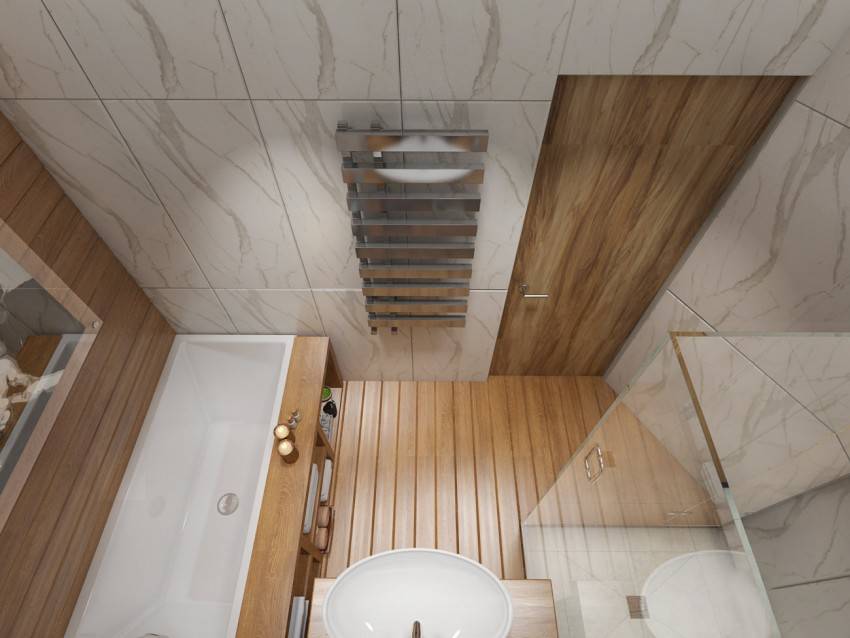 Вместо традиционной межкомнатной двери используйте раздвижную конструкцию в ванную, которая скользит в стену. Установите душевую кабину из стекла и глянцевой поверхности, чтобы визуально открыть комнату. Вместо стандартного умывальника, выберите настенную сантехнику для простора. Замените большую ванну уменьшенной версией или рассмотрите душевую кабину. Используйте угловую мебель и сантехнику.