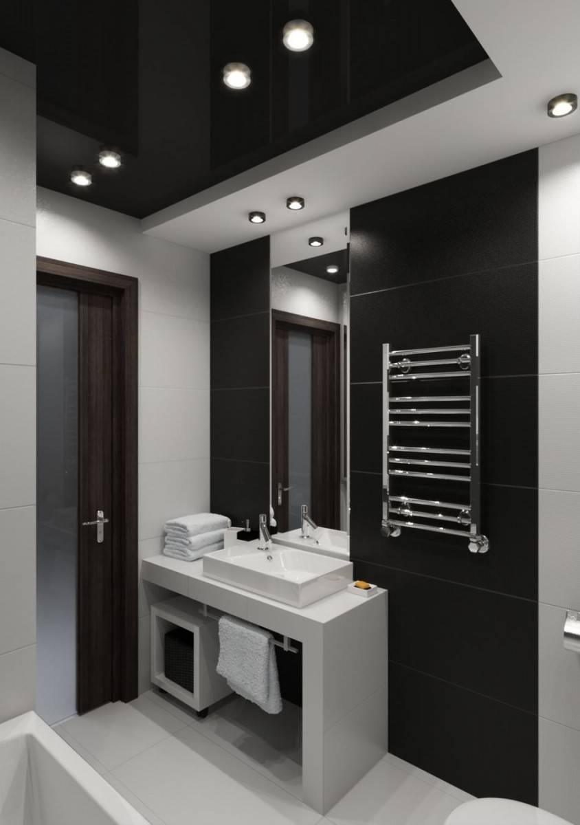 Для облицовки стен в ванной, очень часто используют керамическую плитку или пластиковые панели. Это связано с устойчивостью этих материалов к воздействию влаги и механических повреждений, легкостью в уходе и большому выбору различных вариантов. Встречаются модели керамической плитки, повторяющей поверхность мрамора или дерева. Для расширения пространства используется прием вертикальных или горизонтальных полос.