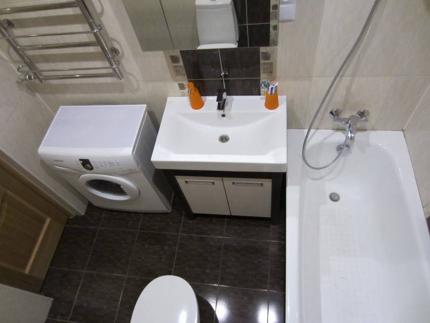 - Во-вторых, совмещенный санузел со стиральной машиной снижает риск потопа и затопления нижних этажей, так как зачастую в ванной комнате предусмотрена повышенная гидроизоляция.