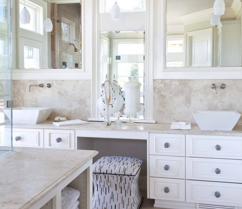 - Используйте цветовые оттенки из уже выбранных вами материалов, например, тона плитки, мраморные прожилки.