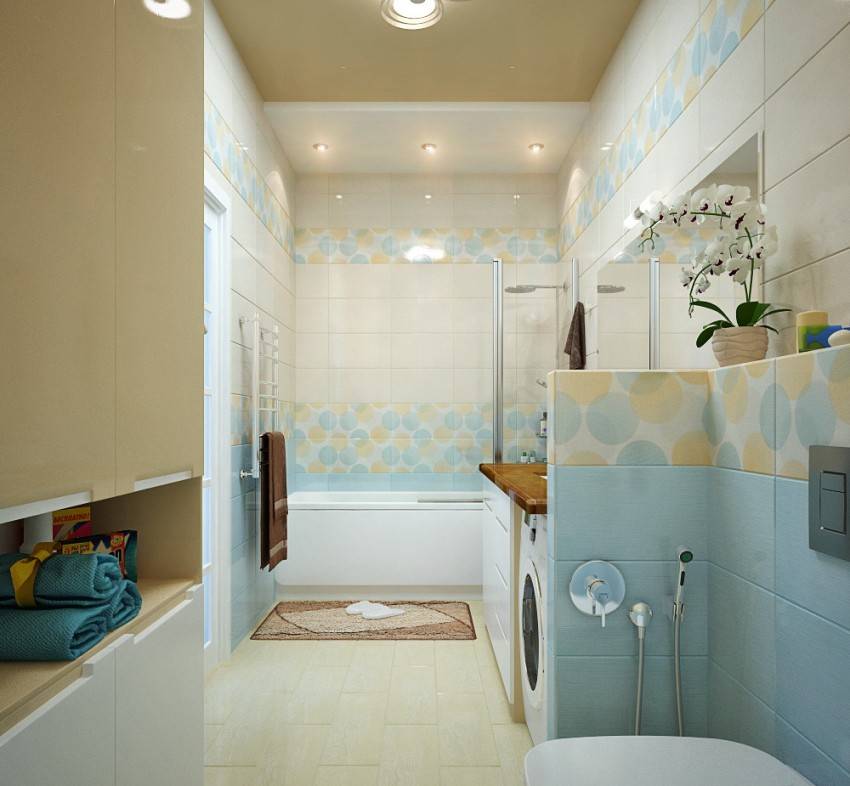 Обустраивая санузел, необходимо помнить, что все используемые материалы должны быть устойчивыми к воздействию влаги. Чаще всего, дизайн узкой ванной комнаты предполагает применение таких отделочных материалов, как: