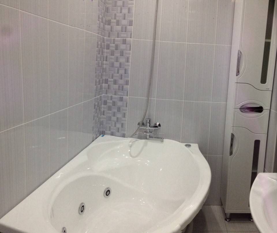 В случае установки керамической плитки без предварительного измерения углов, могут наблюдаться некоторые неточности при установке угловой ванны. Именно поэтому ее тип и непосредственный выбор должен быть тщательно продуман еще в начале ремонтных работ.