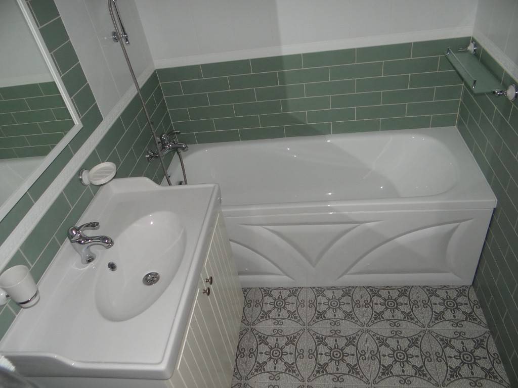 Дизайн узкой ванной в зеленых тонахИсточник prointerno.io