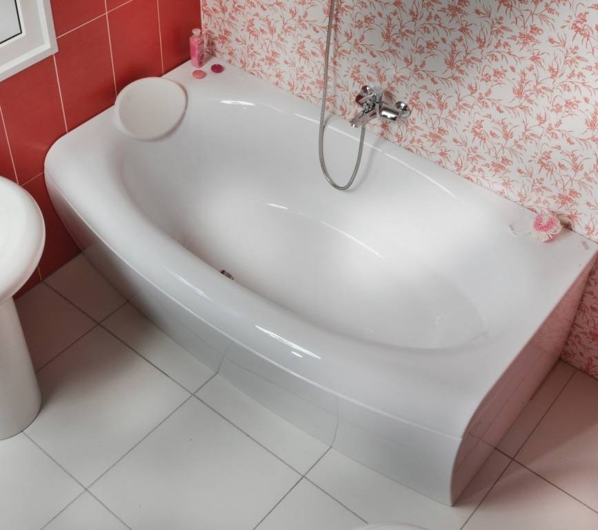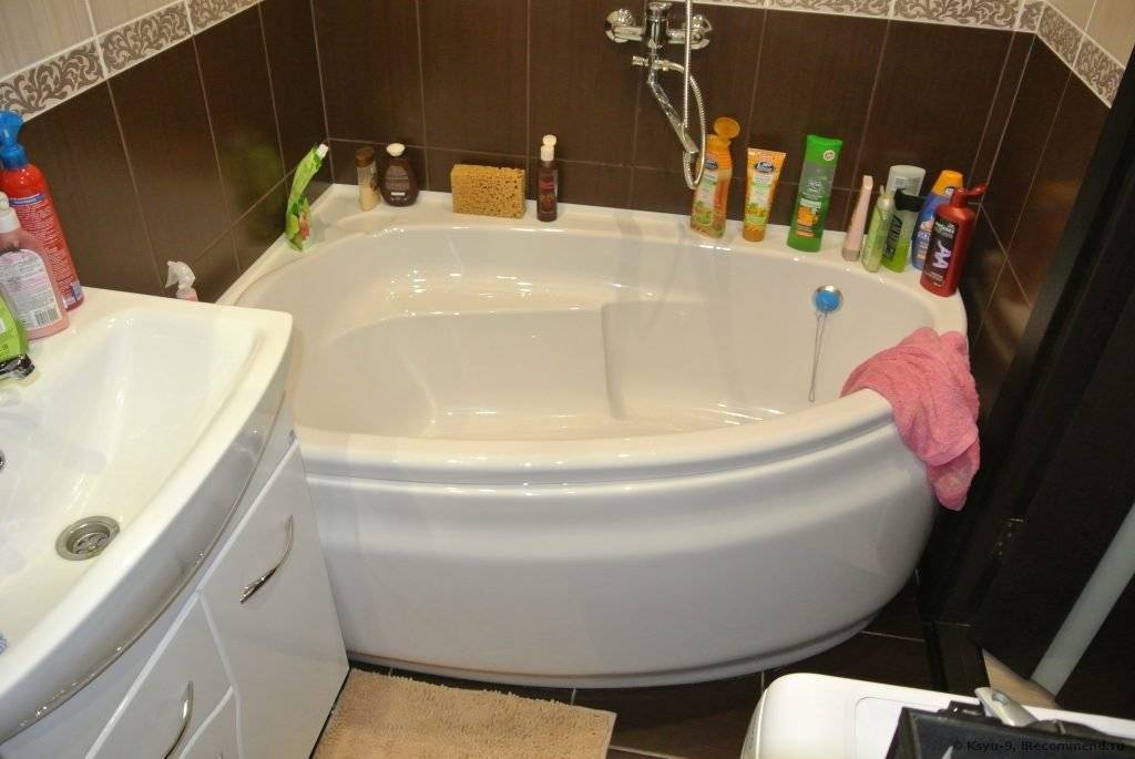 Асимметричные угловые модели позволяют даже при небольшой площади помещения пользоваться длинной ванной. Например, при длине ванны 150 см, длина чаши может достигать 180 см. Если пространство не позволяет использовать такой вариант, можно приобрести асимметричную модель меньших размеров с чашей, зауженной с одной стороны.