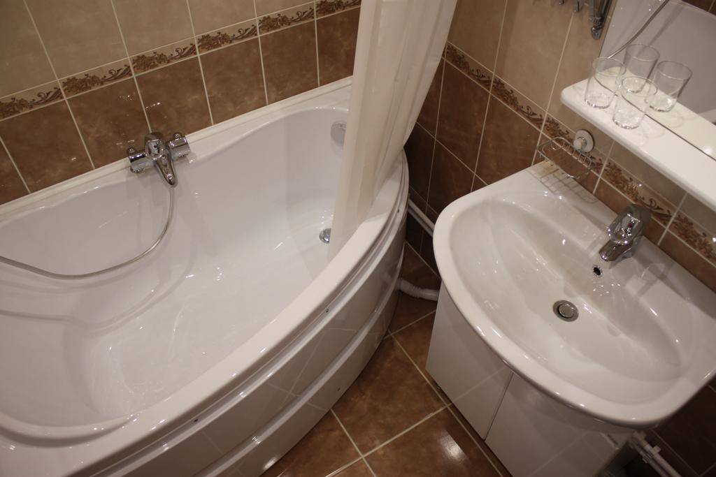 Для небольшой ванной комнаты в блоке рекомендуется асимметричная или узкая ванна. Симметричные ванны занимают больше места, лучше всего их использовать в просторной комнате. Размеры угловой ванны различны, они охватывают как маленькие, так и большие модели с параметрами: