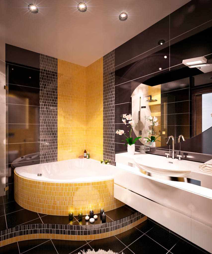 Угловая ванна станет центром любой современной ванной комнаты. Перед ее покупкой можно посмотреть множество фото идей дизайна 2020 года. Несложно найти тот, который соответствует личным вкусовым предпочтениям.