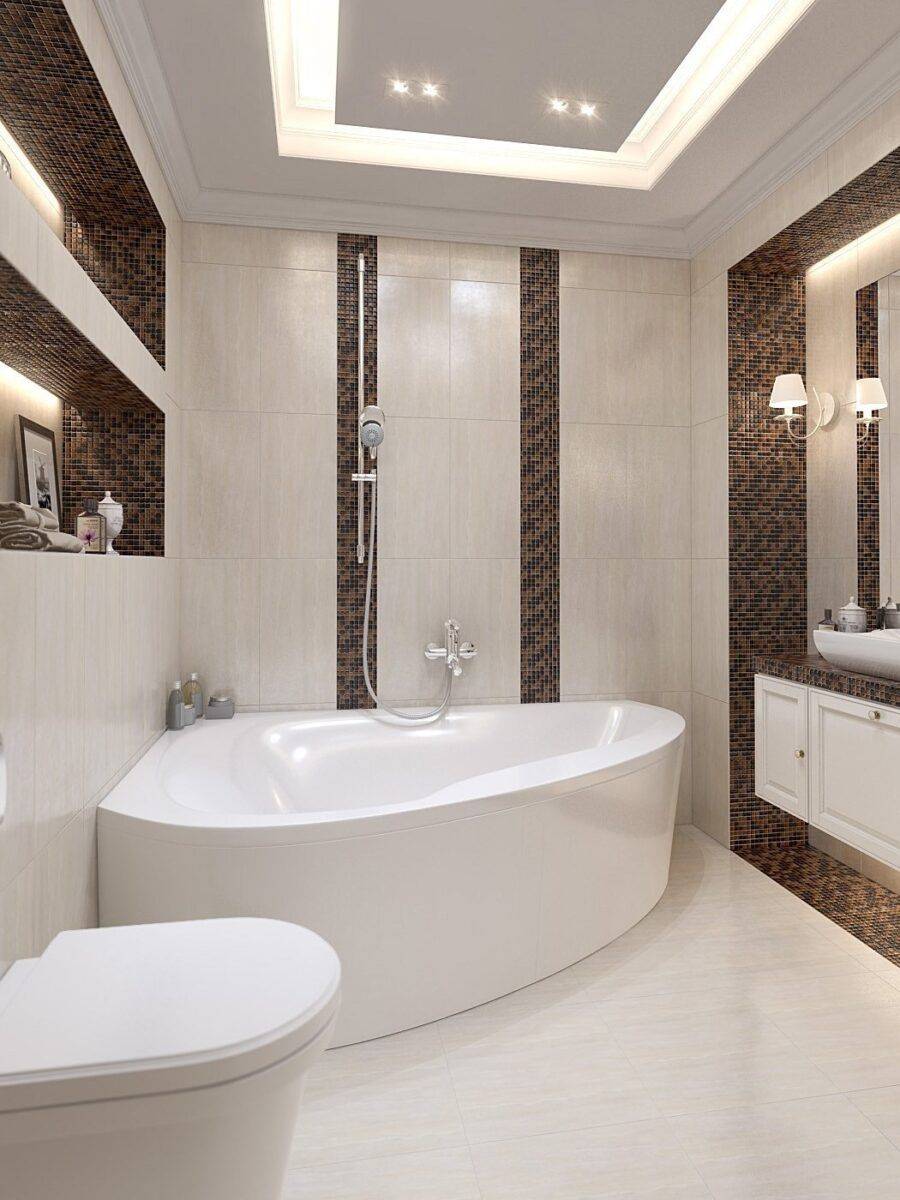 Идеи 2020 года предлагают широкий выбор расположения угловой ванны в дизайне современной ванной комнаты. Размеры должны соответствовать площади помещения так, чтобы при установке бортики полностью прилегали к двум или трем стенам ниши.
