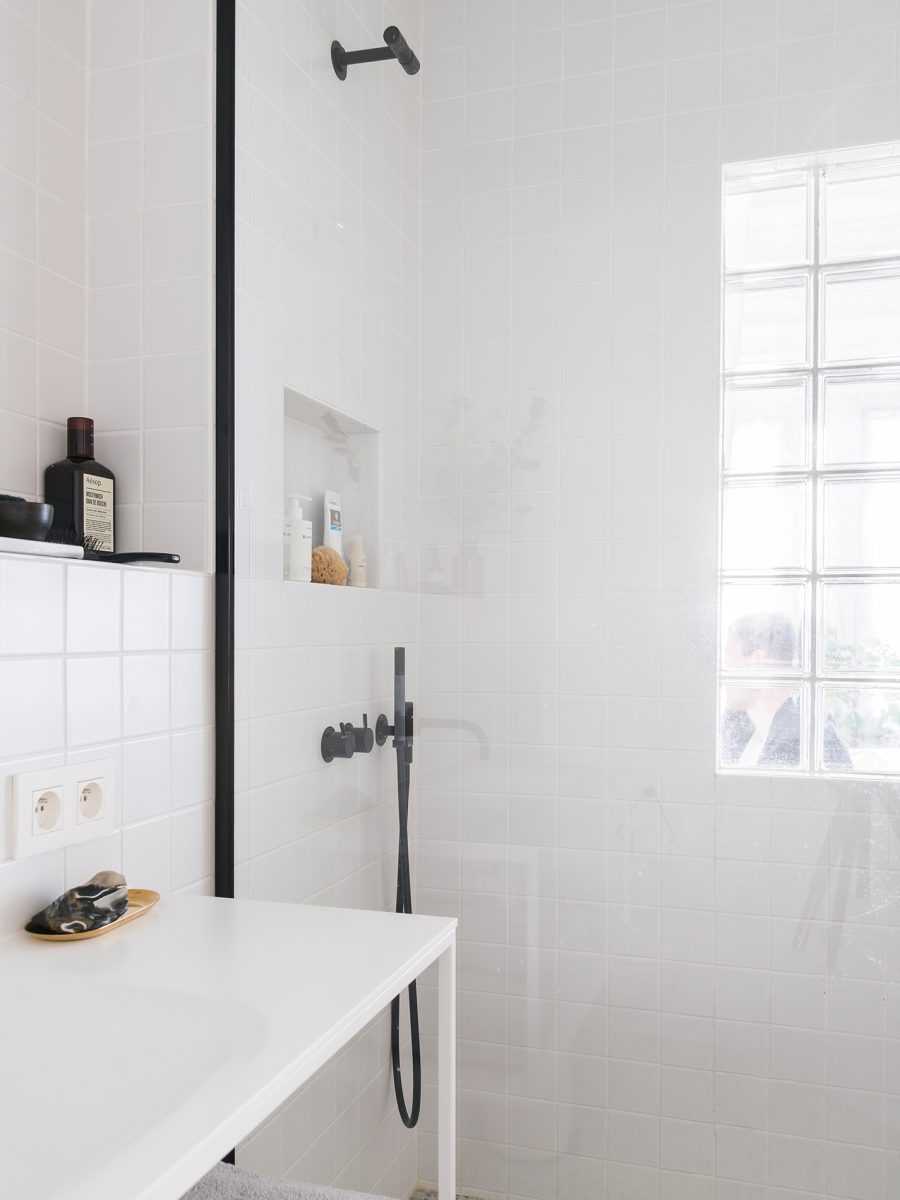 В белой ванной комнате можно отдельные места сделать черным цветом