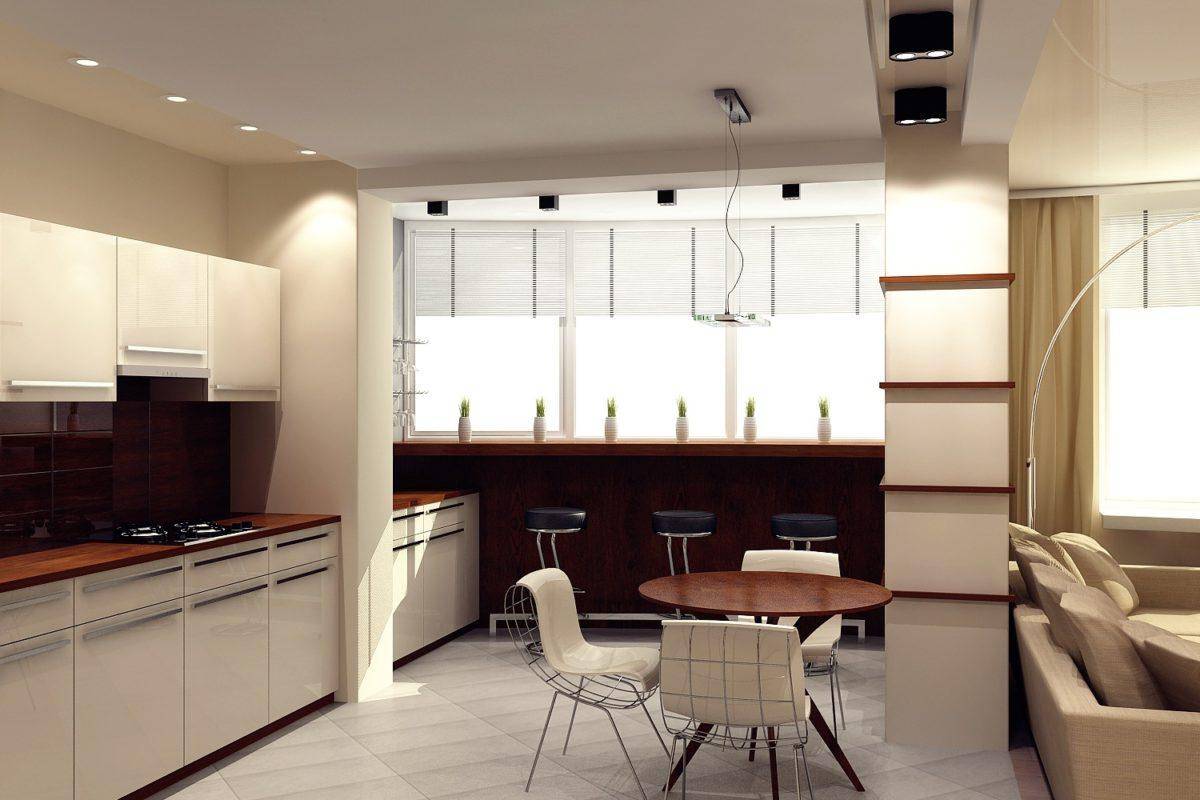 Интересный вариант зонирования помещения, который часто используется при перепланировке балкона и объединения с комнатой.