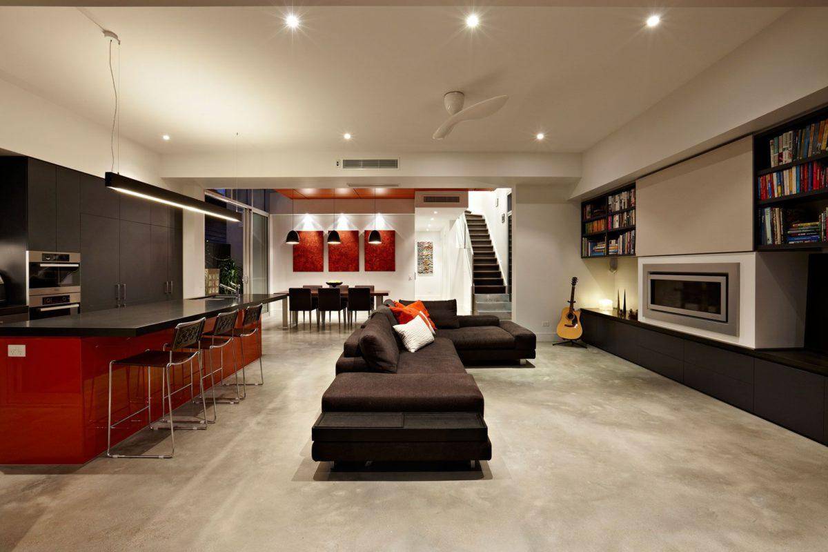 Свет должен подсвечивать комнату снизу и сбоку. Это создаст красивые тени и контраст в интерьере. Потолочное освещение — базовое. Идеально, если это многоуровневый вариант.