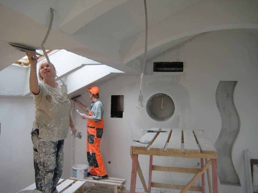 - застройщик сдает коттедж с учетом предположительной планировки здания — на это указывает месторасположение розеток и проводов. Следовательно, при перепланировке придется их переносить.