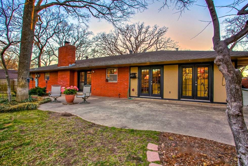 Эта идея все чаще применяется на практике. Хорошо защищенный участок вокруг дома делает выход безопасным. Вмонтировать дополнительную дверь можно в любую спальню. Интересным выглядит это решение как в детской комнате, так и в помещении для семейной пары и пожилых людей. Устройство дополнительного входа не требует больших вложений. Можно использовать для этой цели оконный проем, расширив его до нужного размера. Популярным вариантом становится стеклянная дверь «в пол», или, как ее часто называют, французская. Общий план одноэтажного дома с 3 спальнями не изменится, а вот функциональность его существенно повысится.