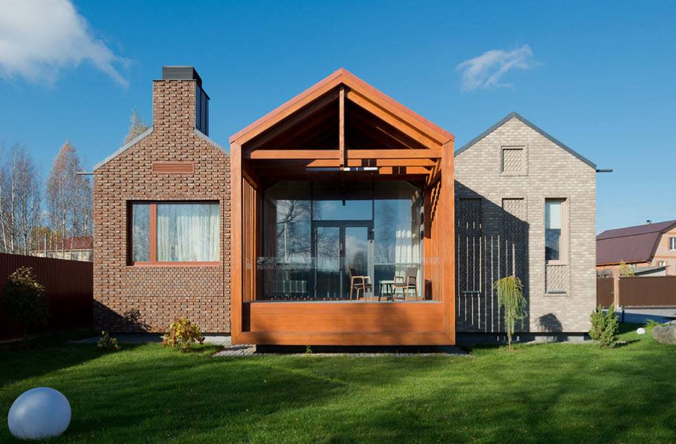 Проект красивого дома с отделкой клинкерным кирпичом Источник st-deluxe.ru