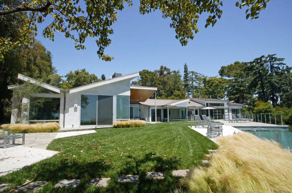 Волнистая линия односкатной кровли смягчает геометрическую строгость фасадов дома, построенного из стекла и металла.