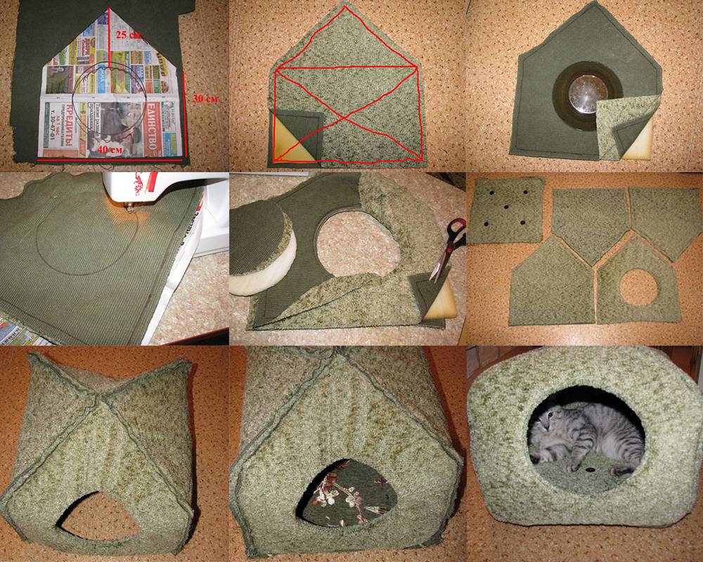 Домик для кошки: мастер-класс по созданию кошачьего дома из ткани