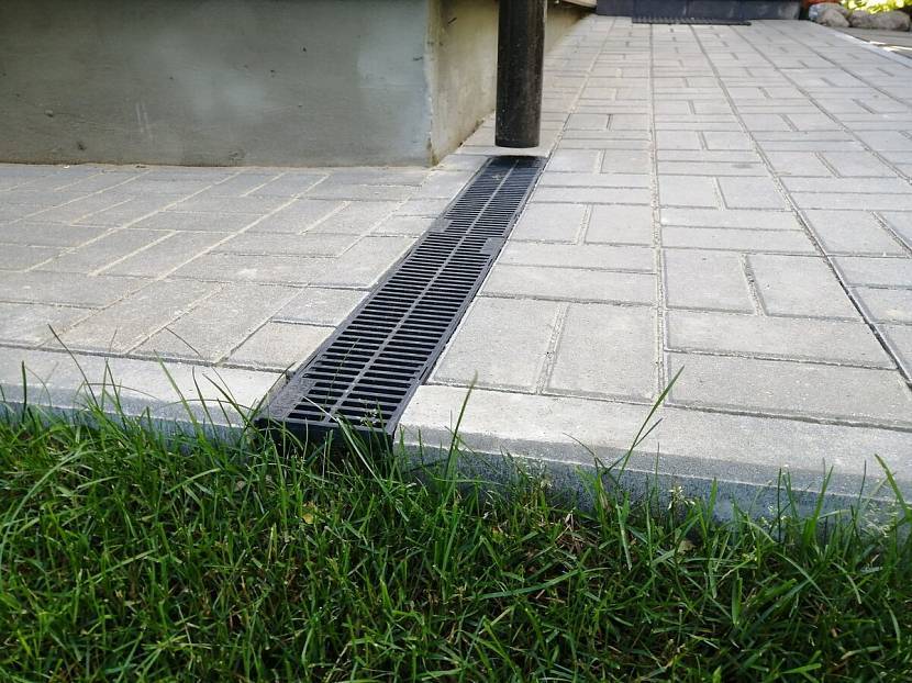 Первый состоит из труб и лотков. Последние прокладываются по периметру крыши. В них стекает дождевая вода со скатов кровли. По вертикально установленным трубам она спускается вниз. И если нет отмостки, влага полностью впитывается в почву, тесно прилегающую к основанию дома, и пропитывает собой фундамент.