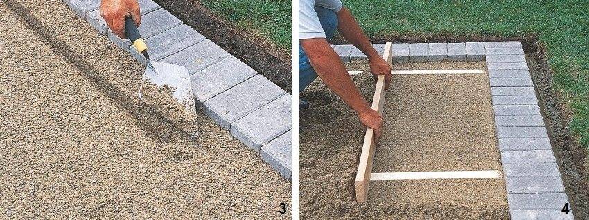 - утапливая заготовки в основание (если укладывается на песок), соблюдайте одинаковую глубину, ориентируйтесь по уровню;
