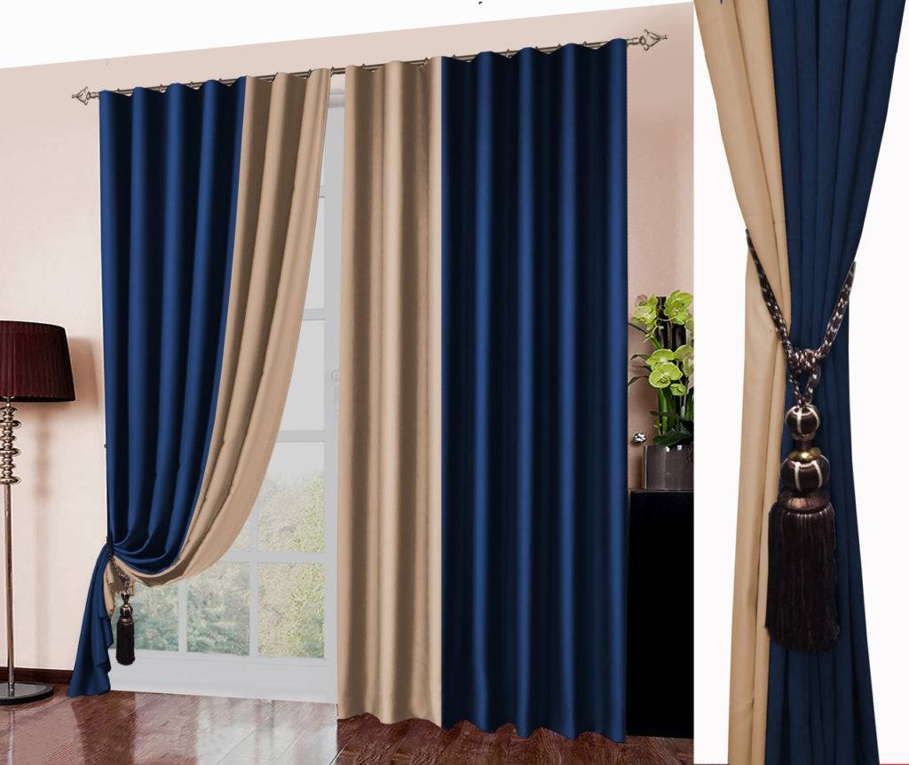 Шторы, комбинированные из двух цветов, нередко шьются в качестве неподвижного убранства окон – их не отодвигают утром или вечером.