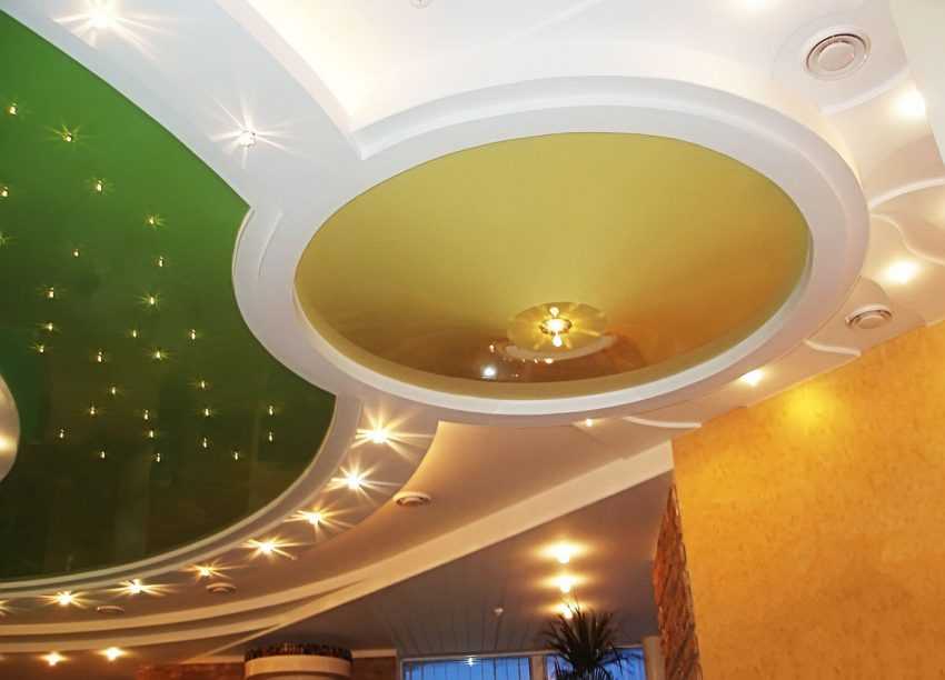 Двухуровневый потолок из гипсокартона и натяжной: фото, смешанный без гипсокартона