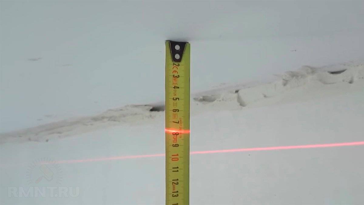 1. Разметьте по периметру, при помощи нивелира и карандаша горизонтальные линии по нижней точке перепада поверхности.