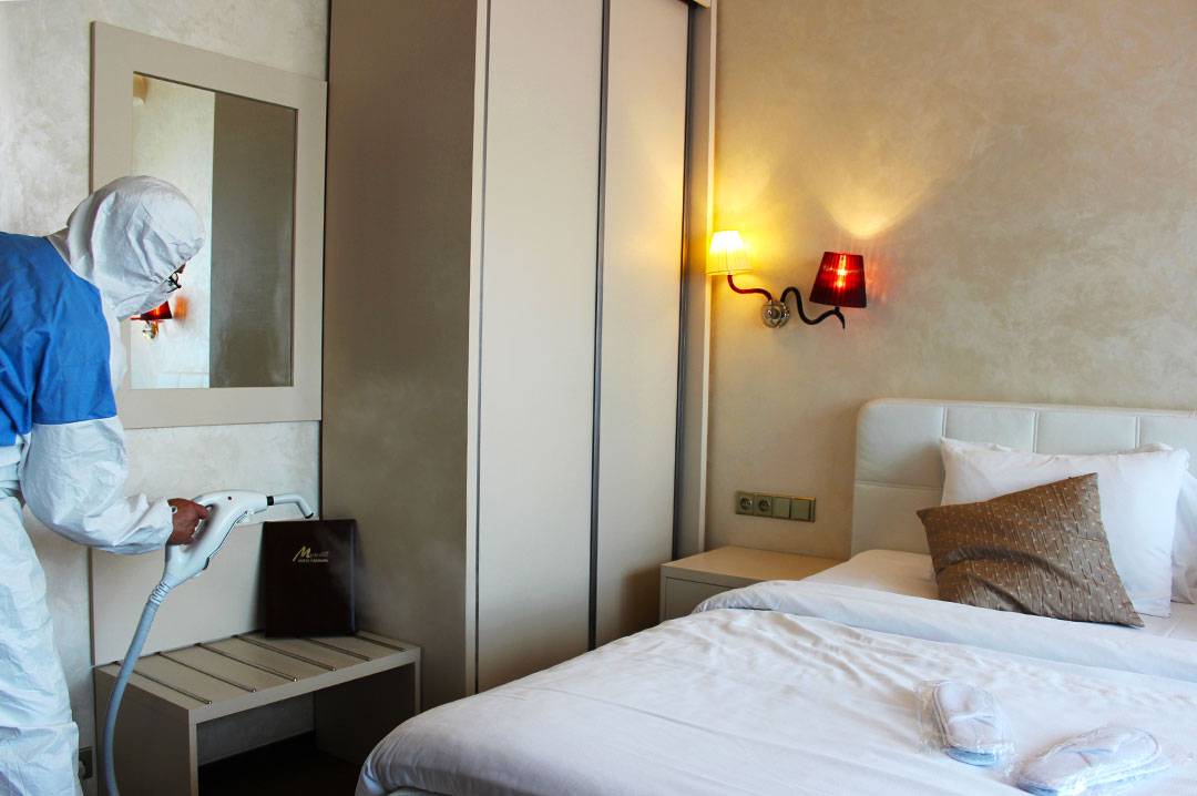 - дополнительная дезинфекция 10 основных поверхностей в гостиничных номерах, которых часто касаются, в том числе выключателей и дверных ручек;