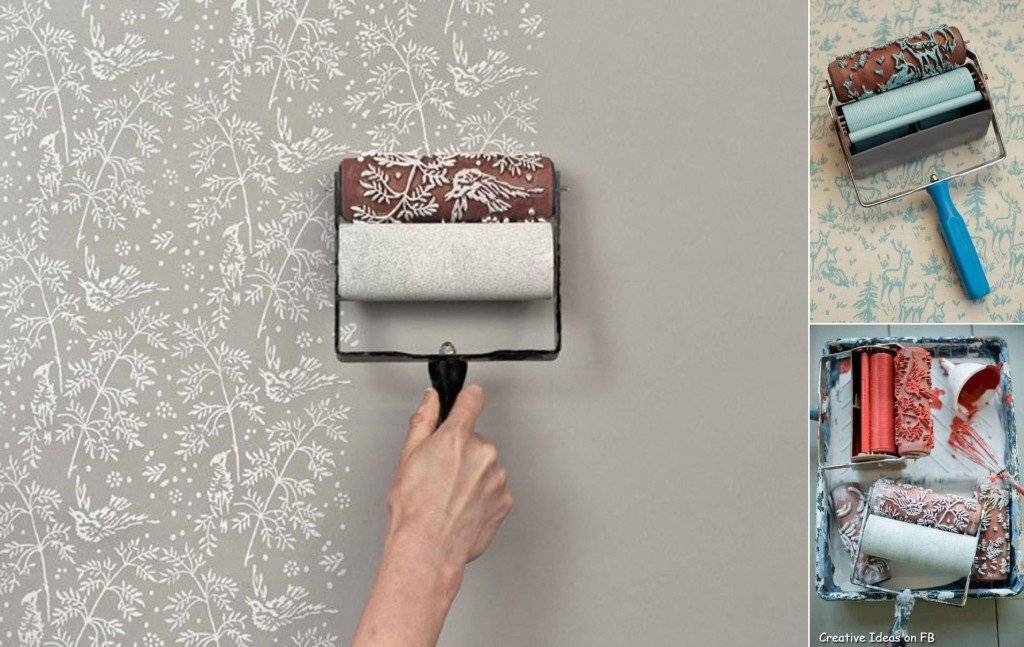 Для создания причудливых текстур фактурной краской можно воспользоваться любыми подручными предметами, фантазия здесь безгранична. Некоторые делают узоры веником или щеткой. Кроме того, можно создать трафарет и красит с помощью него.