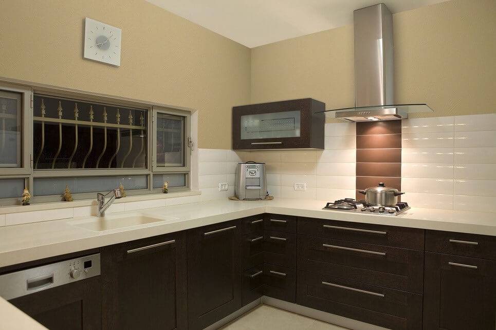 Фартук должен находиться по всему периметру кухни, не только в самых загрязняемых местах, за мойкой и плитой. Если на кухне раковина находится в углу, фартук должен защищать ее с обеих сторон.