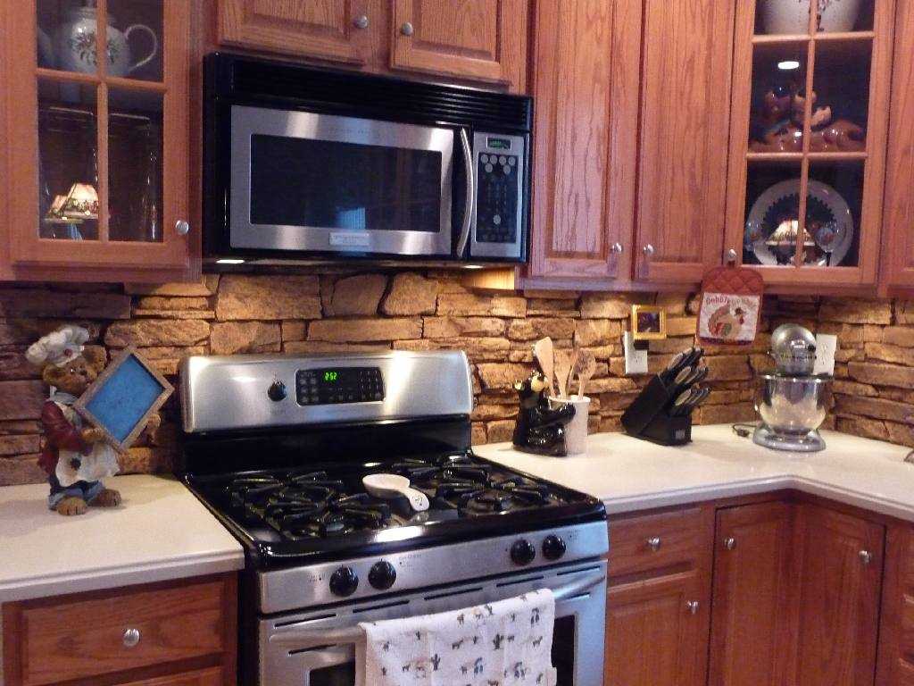 Фартук на кухню из камня. Смотрится в некоторых интерьерах отлично….но убирать тяжело