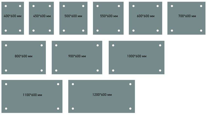 Существующие размеры готовых скинали из стекла