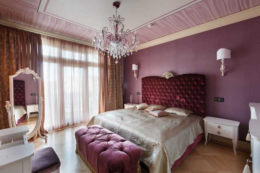 Стиль фиолетовой спальни разнообразен (в зависимости от выбранного интерьера и идеи): это может быть классика, хай-тек, арт-деко, необарокко, арабский мотив