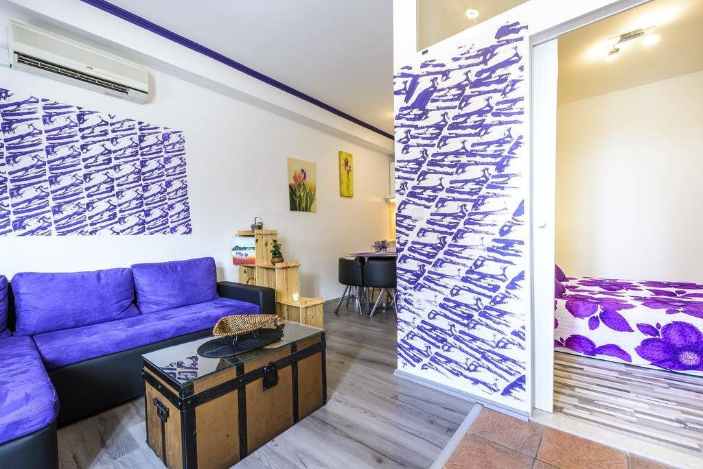 Фиолетово-зеленый интерьер