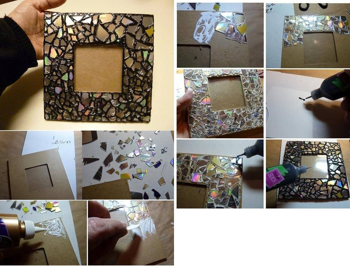 Украшение рамки из картона с помощью старого диска
