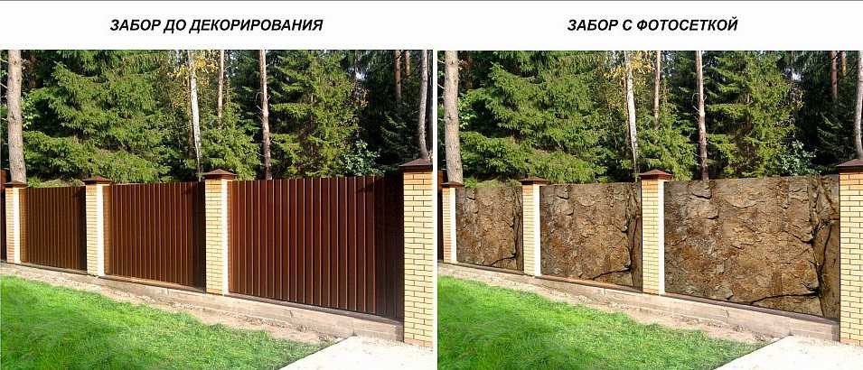 Оформить фото-сеткой можно и тыльную сторону забора из профнастила