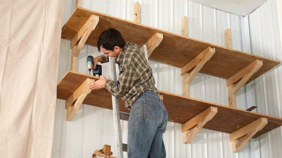 Без мест хранения инструментов настоящему автомобилисту обойтись сложно. Для обустройства полок в гараже можно воспользоваться любым вариантом их расположения. Они могут быть подвесными, угловыми, иметь разную длину и ширину. Полки можно расположить вдоль одной, двух или даже трех стен.