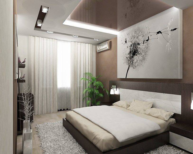 - Современный стиль очень разнообразен. Для спальни, выполненной в таком стиле, подойдут скрытые пластиковые или металлические конструкции. Они выдерживают значительный вес гардин, удобные в использовании.