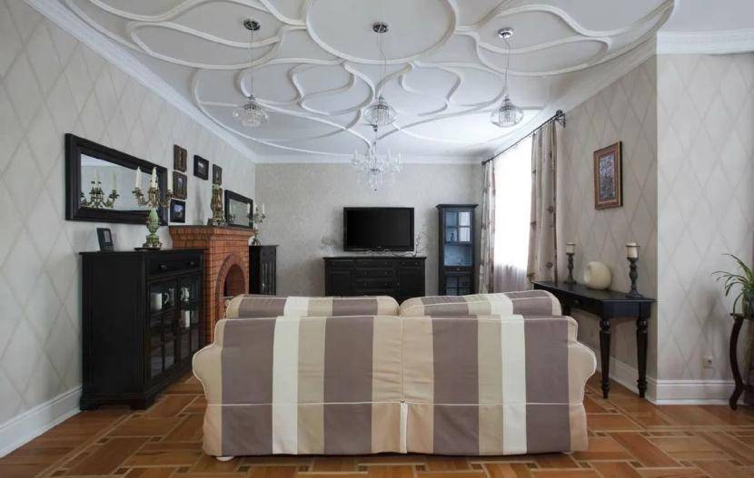 Гладкие – в процессе производства используют обычный метод стягивания, готовое изделие получается гладким, без наличия декоративных элементов. Для получения таких моделей используют простые жестяные либо фанерные трафареты, которые заливают гипсом. Такие модели подходят для оформления любых помещений: загородных домов, элитного жилья, коммунальных квартир.